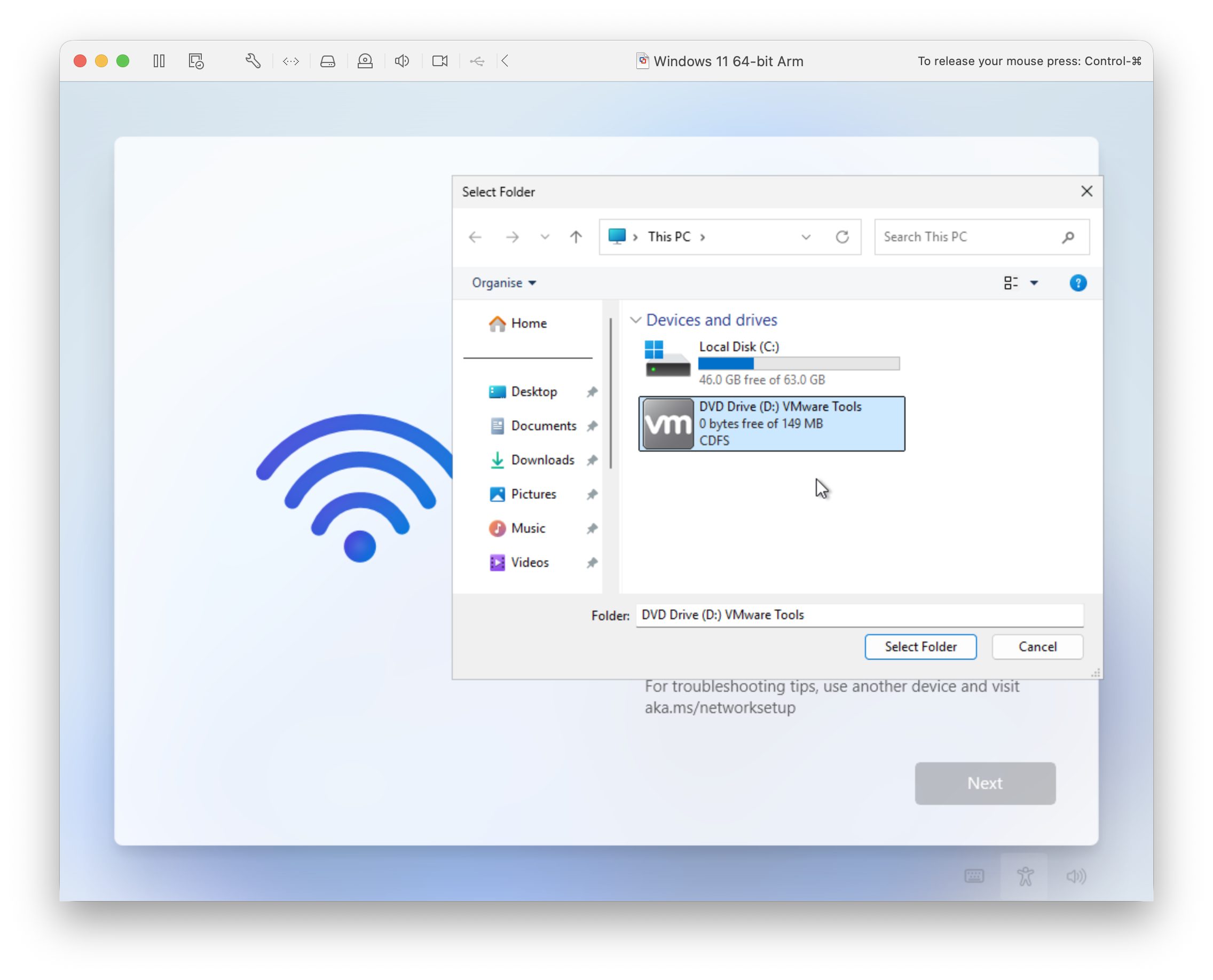 - Browse the newly installed VMware Tools.
