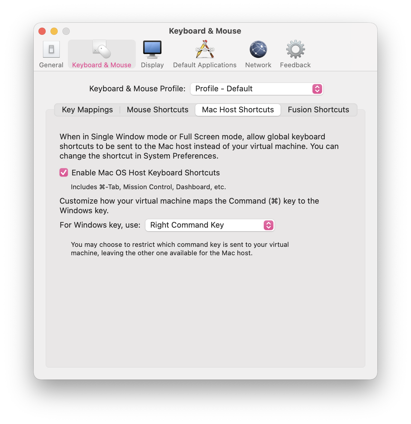 Enable Mac OS Host Keyboard Shortcuts
